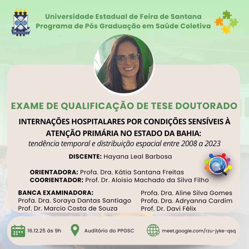 Convite para qualificação da doutoranda Hayana Barbosa, dia 16/12/2025, às 9h.
