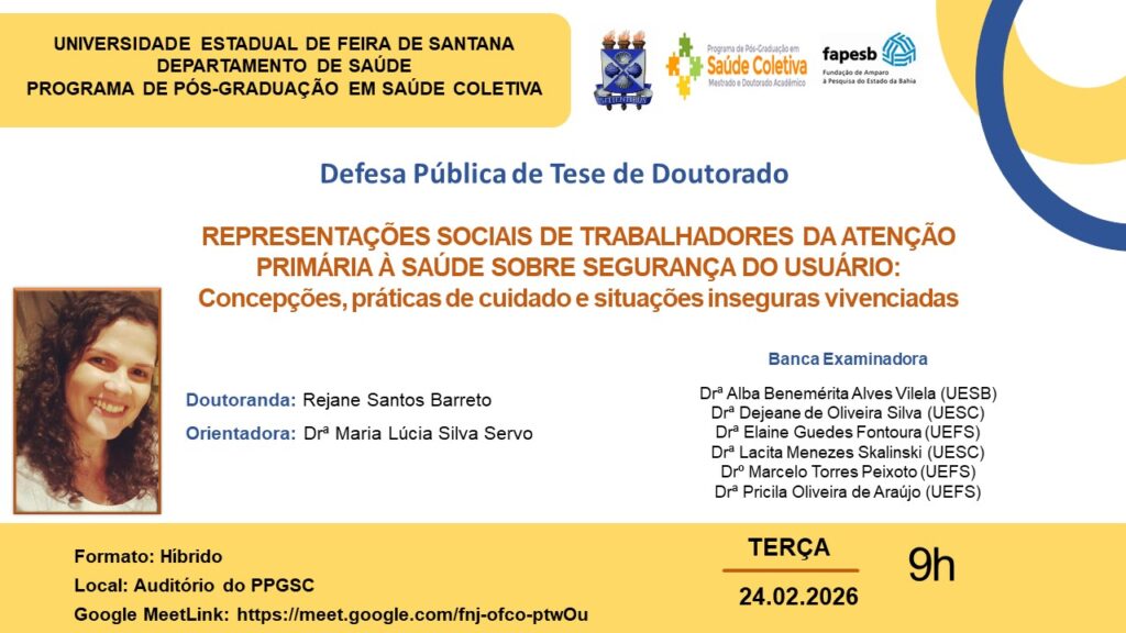 Título da Tese: “REPRESENTAÇÕES SOCIAIS DE TRABALHADORES DA ATENÇÃO PRIMÁRIA À SAÚDE SOBRE SEGURANÇA DO USUÁRIO: Concepções, práticas de cuidado e situações inseguras vivenciadas”