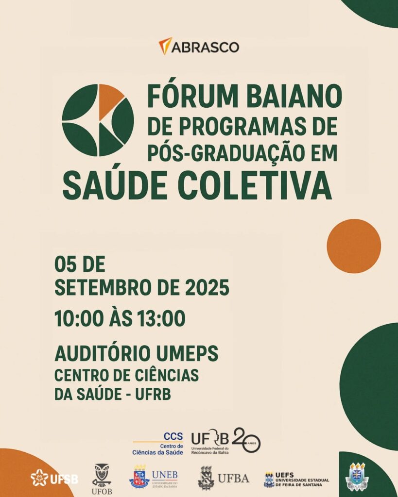 O Fórum Baiano de Programas de Pós-graduação em Saúde Coletiva será um espaço privilegiado para diálogo sobre a Pesquisa, Ensino e Extensão da Saúde Coletiva em nosso Estado.