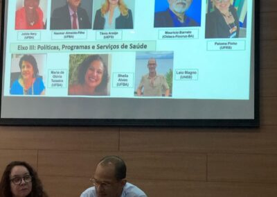 Durante o seminário, os pesquisadores Naomar de Almeida Filho (ISC/UFBA), Guilherme Werneck (MS), Tânia Araújo (Uefs), Enirtes Caetano (ENSP/Fiocruz), Maria de Jesus Fonseca (ENSP/Fiocruz) e Laio Magno (Uneb) compartilharam as principais diretrizes do plano e ofereceram reflexões sobre seus objetivos e estratégias.