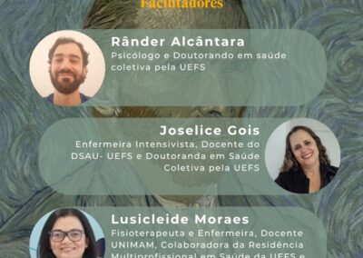 Esperamos poder contribuir com o conhecimento e aprimoramento das práticas de cada participante, fortalecendo a rede de cuidado em saúde mental em Feira de Santana.