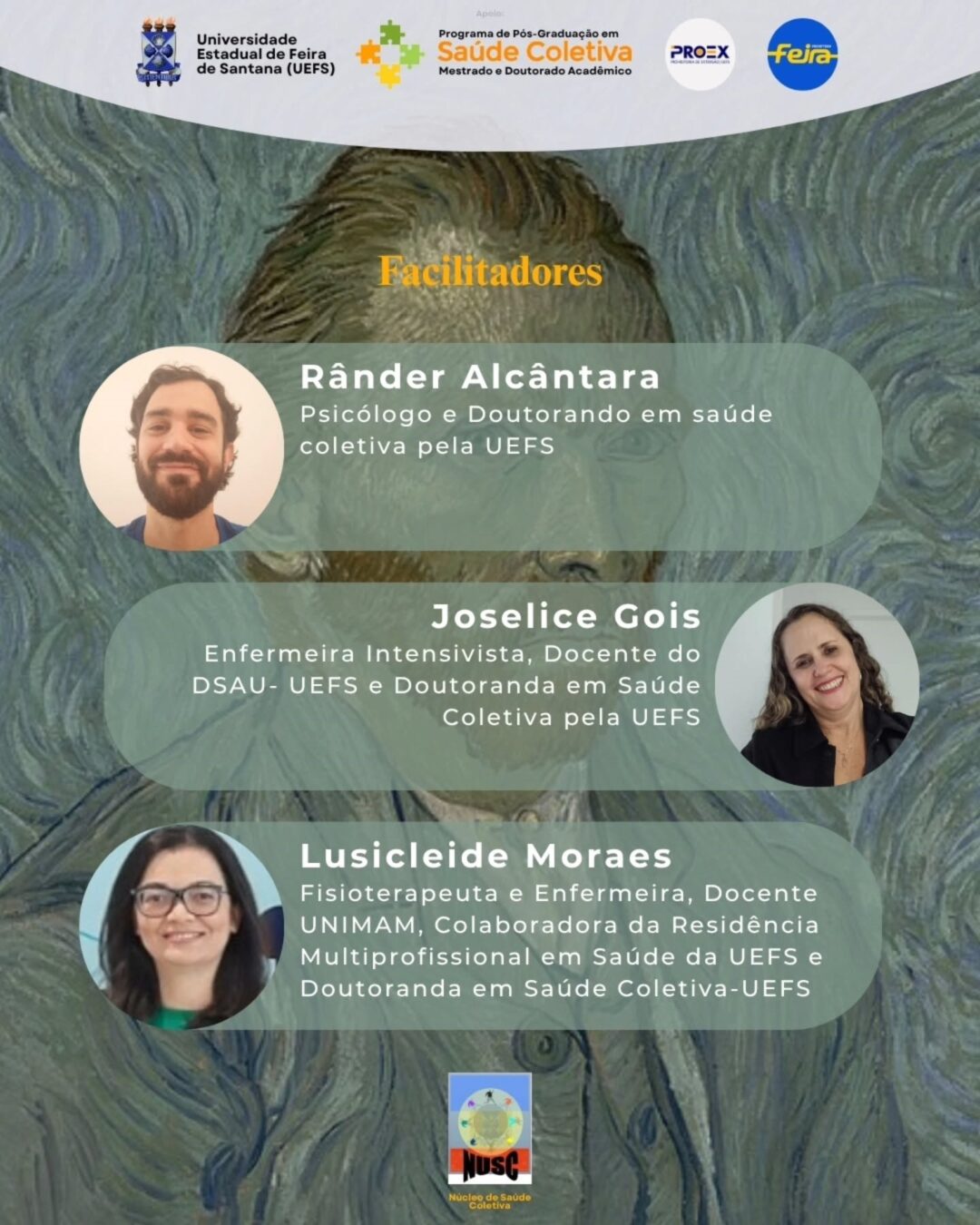 Esperamos poder contribuir com o conhecimento e aprimoramento das práticas de cada participante, fortalecendo a rede de cuidado em saúde mental em Feira de Santana.